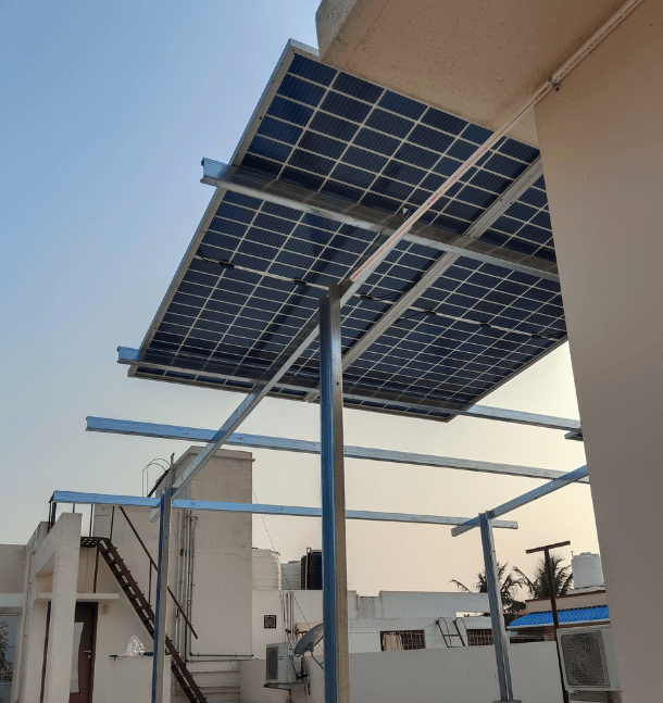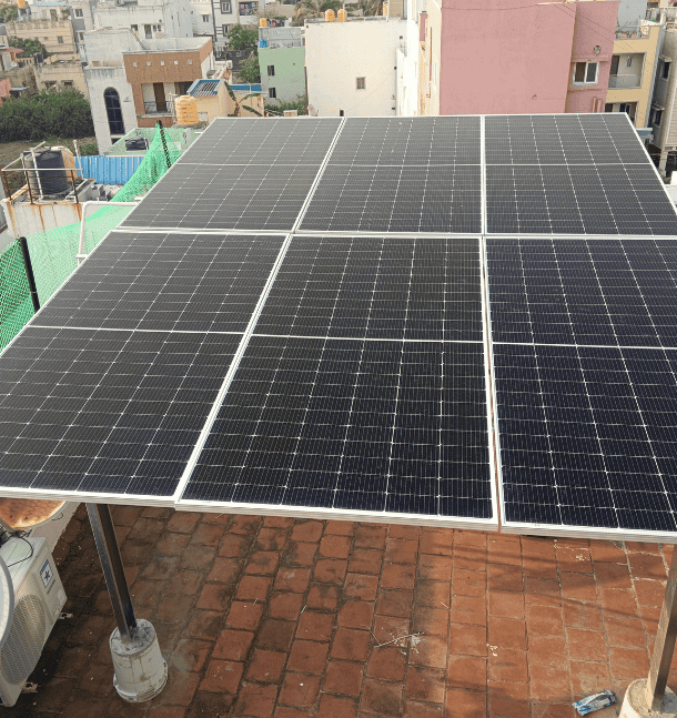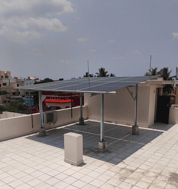 A 4kWp rooftop solar system was installed at a residence in Selaiyur, Chengalpet. This system provides reliable clean energy, reduces monthly electricity costs, and supports long-term sustainability through efficient rooftop utilization.